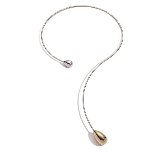 "Duo d'Éclat Moderne - Collier Torque Goutte Minimaliste"