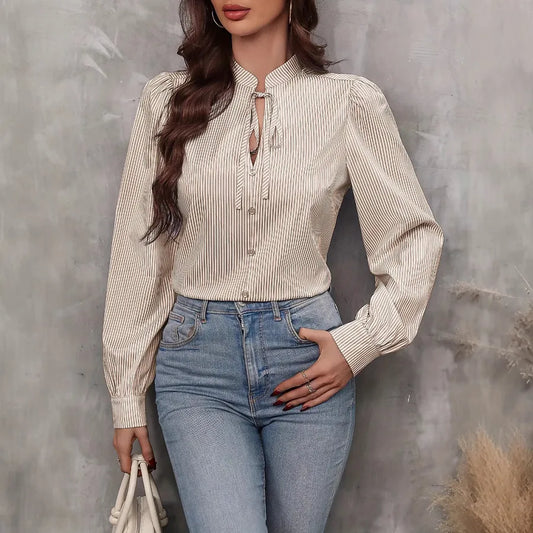 "Élégance Rayée - Blouse à Manches Longues avec Nœud"